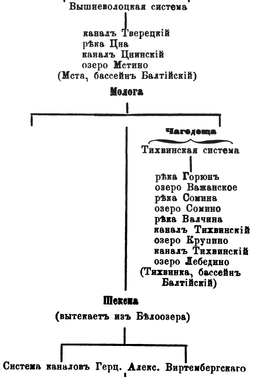 Graphic depiction of the Vyshnevolotskaia canal system.
