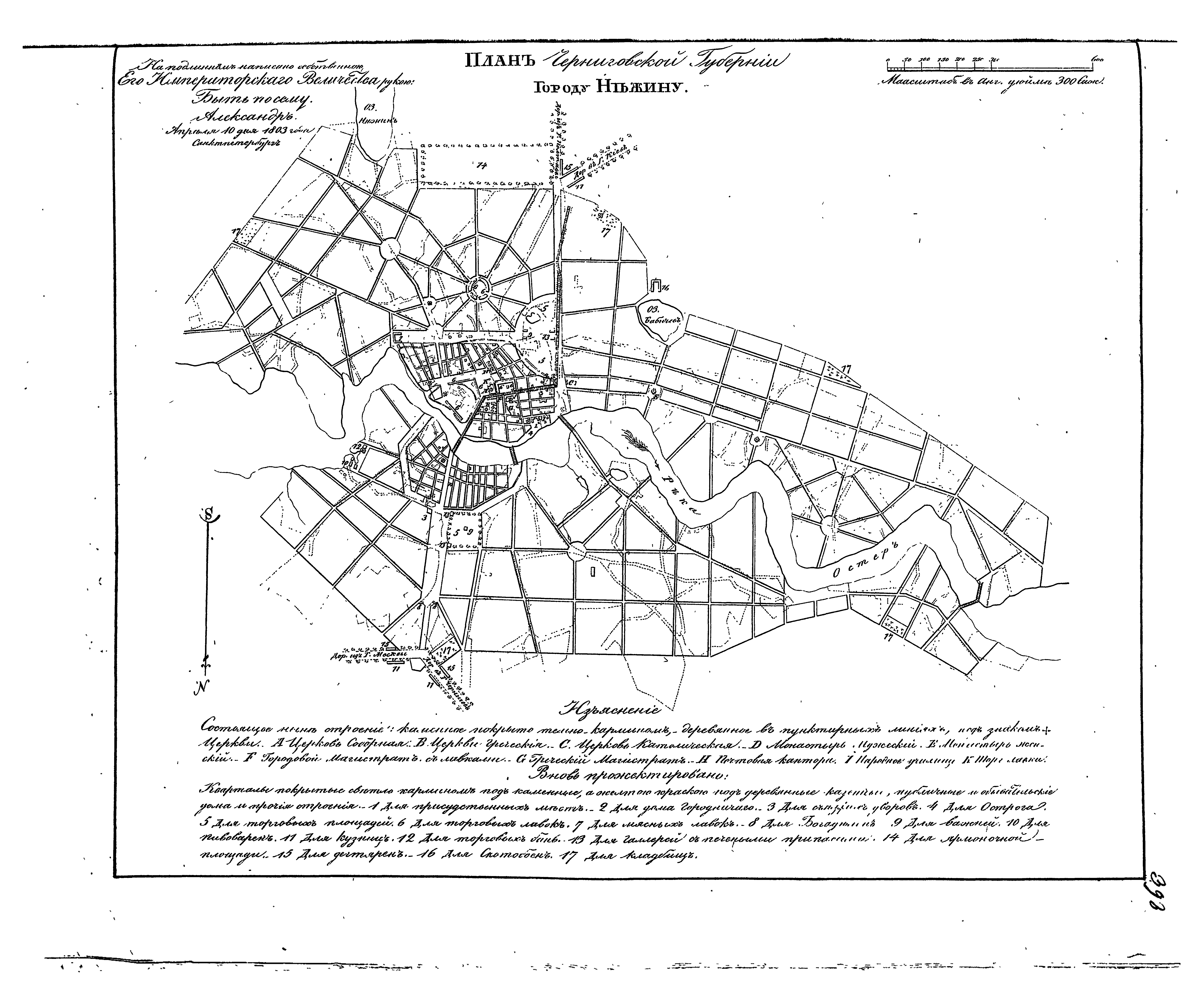 “Plan of the town of Nezhin, Chernigov Province,” The Imperiia Project: Map Gallery Site, accessed March 2, 2026, https://imperiia.omeka.fas.harvard.edu/document/3427.