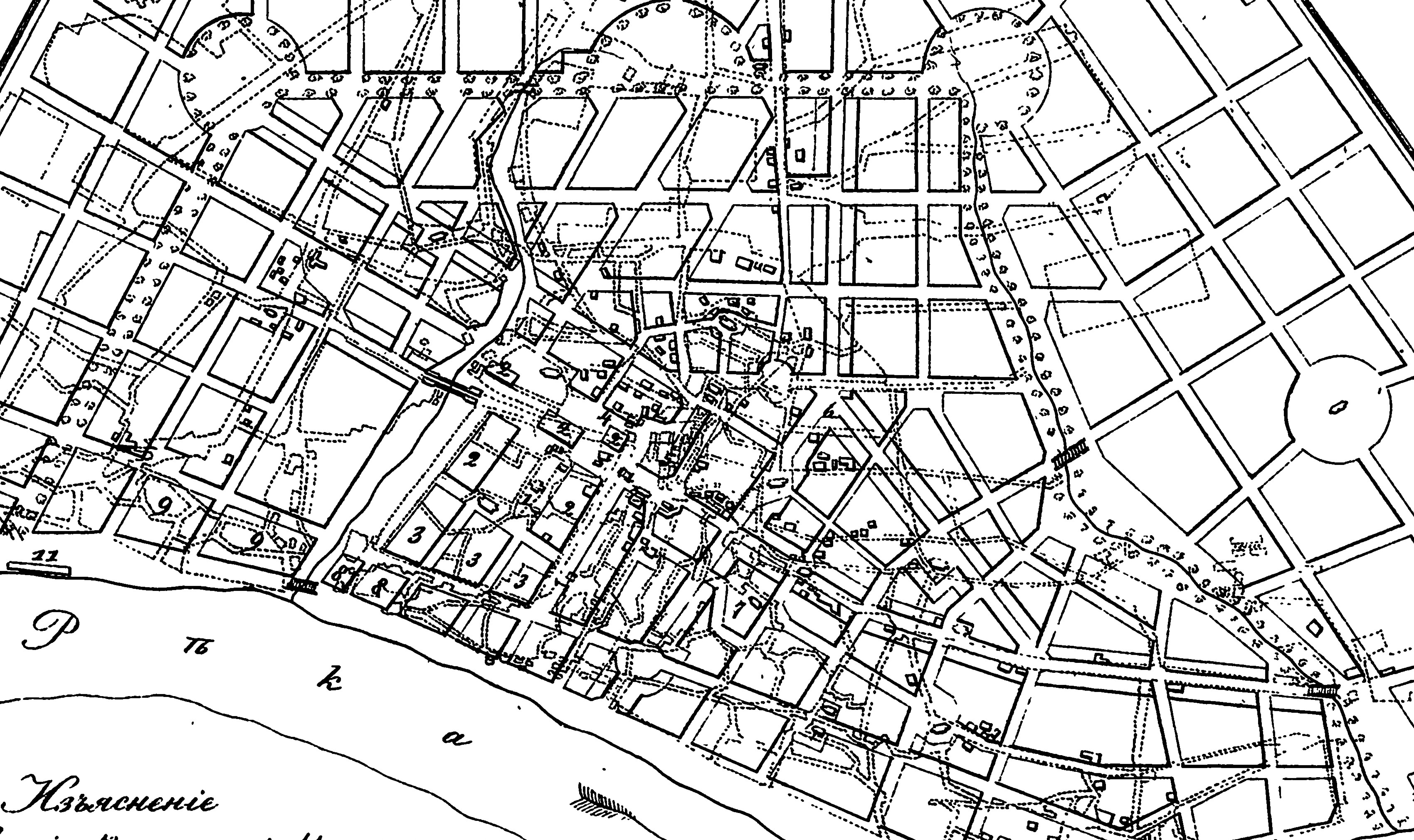 A classic boulevard running parallel to the town walls from the left-bank warehouses (11) on the west side of town to the breweries (12) on the east side. From the pedestrian perspective, it all starts and ends on the Oka River.