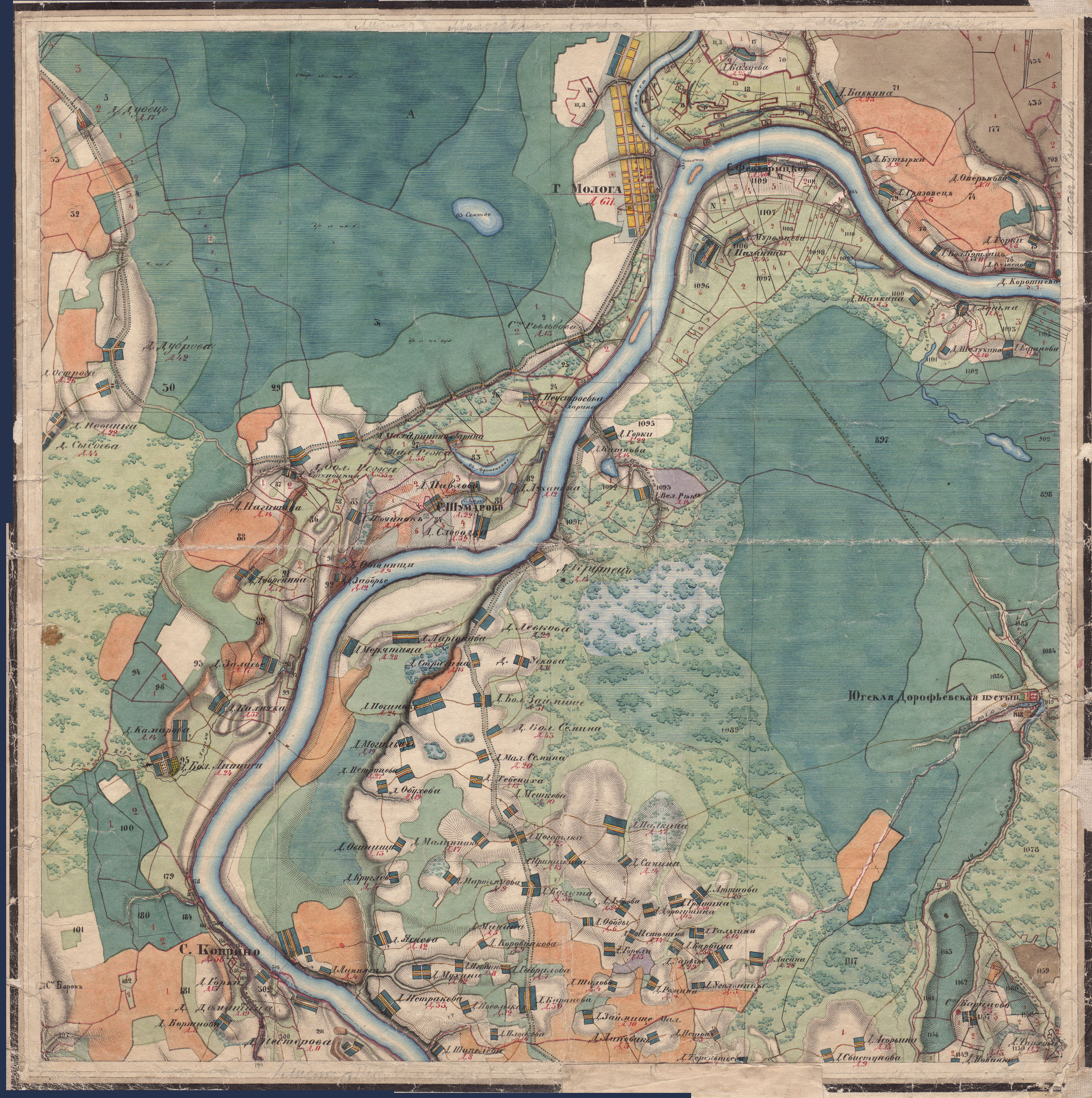 Map of the town and surroundings of Mologa