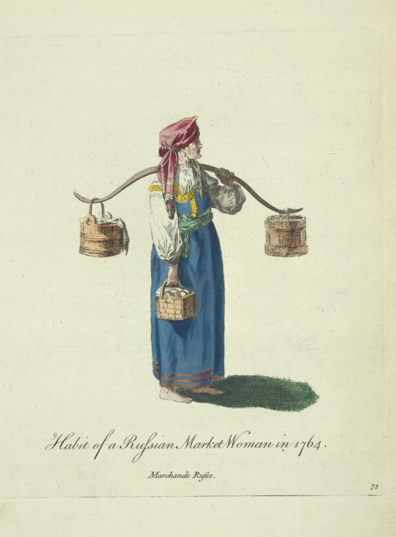 Jean-Baptiste Le Prince (1734-1781), “Habit of a Russian Market Woman in 1764,” The Imperiia Project: Map Gallery Site, accessed March 2, 2026, https://imperiia.omeka.fas.harvard.edu/document/3.