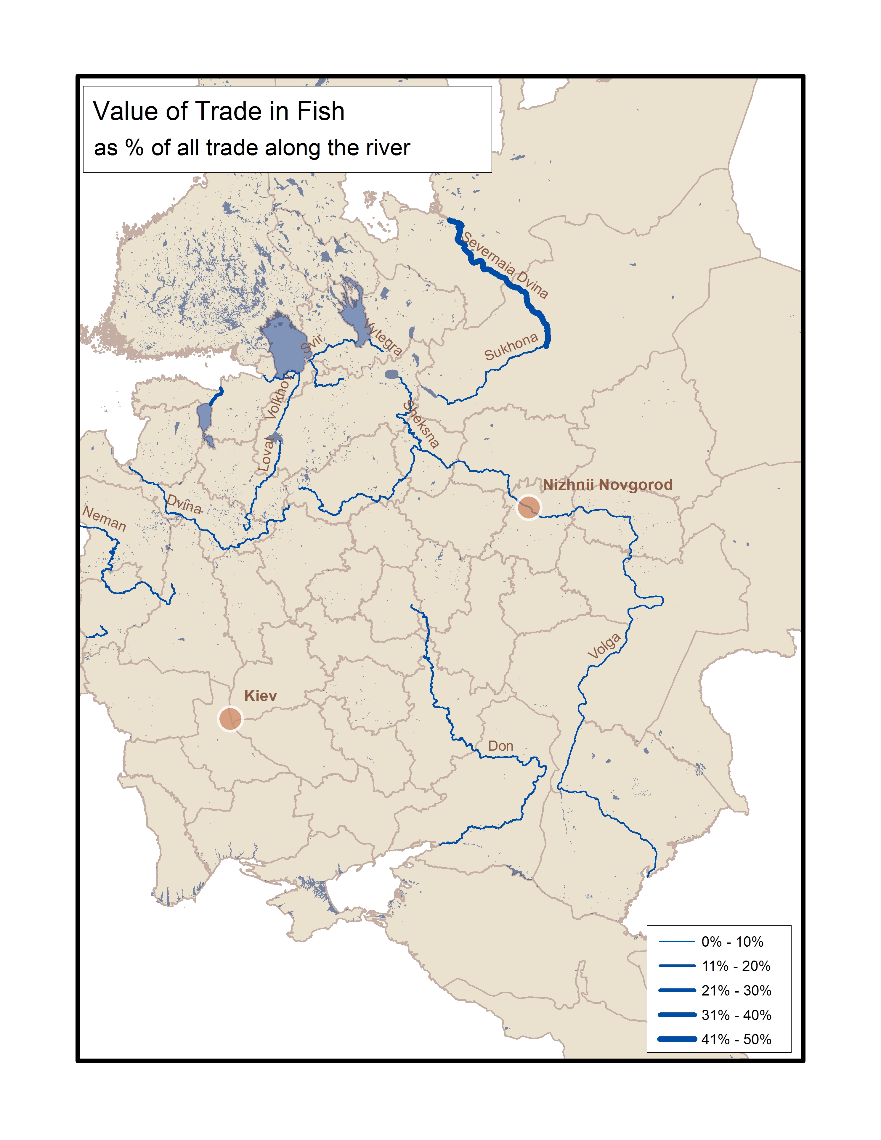 Kelly O'Neill, “Fish: share of the value of trade along each river,” The Imperiia Project: Map Gallery Site, accessed March 5, 2026, https://imperiia.omeka.fas.harvard.edu/document/43.