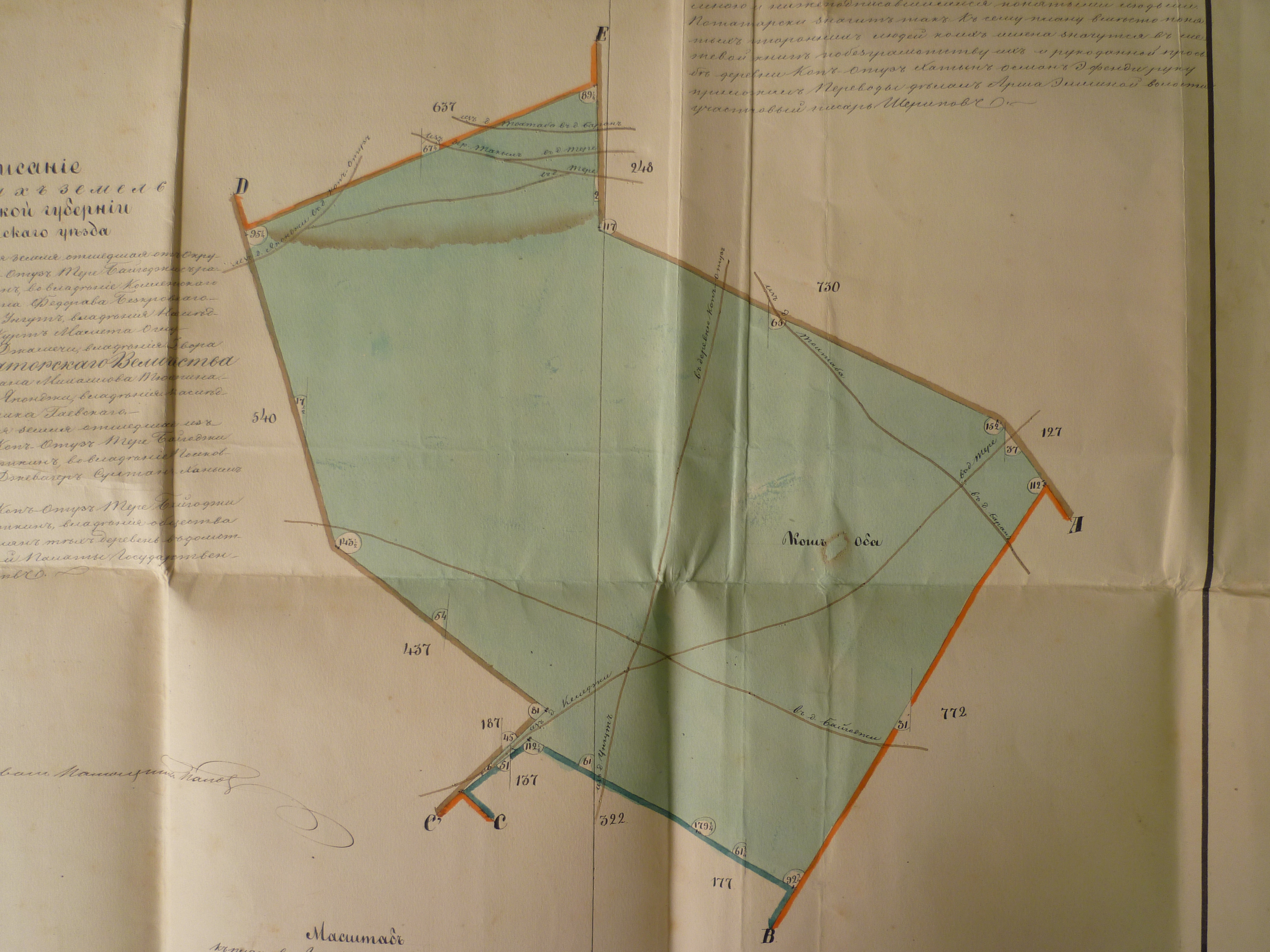 "Geometrical special plan of the surveyed dacha land of the villages of Kop Otuz, Tere, and Baygodzhi, with the ruins of the village of Setkin, Feodosiia district, Tavrida province"