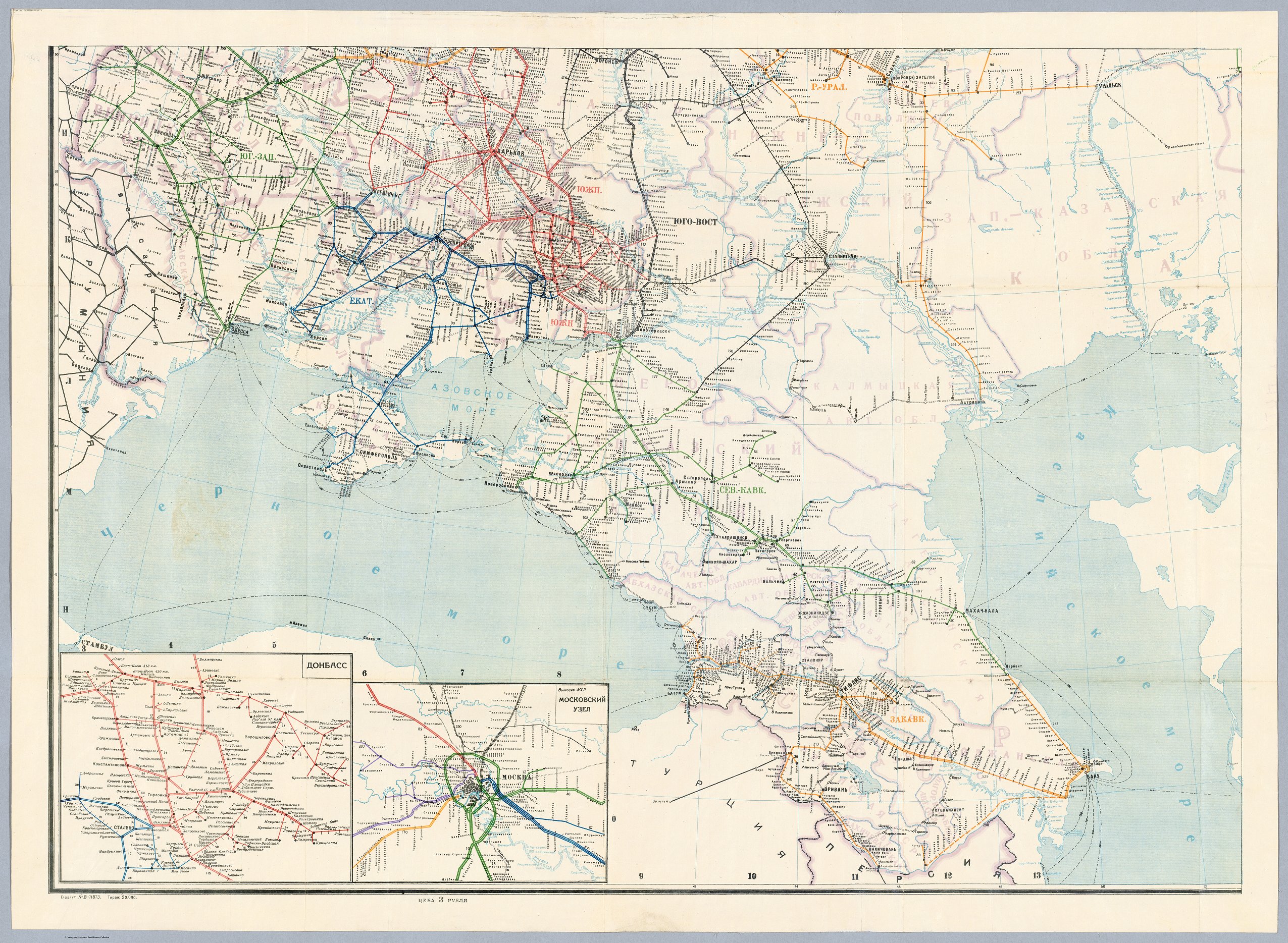 Chromolithograph map of the Soviet transport network