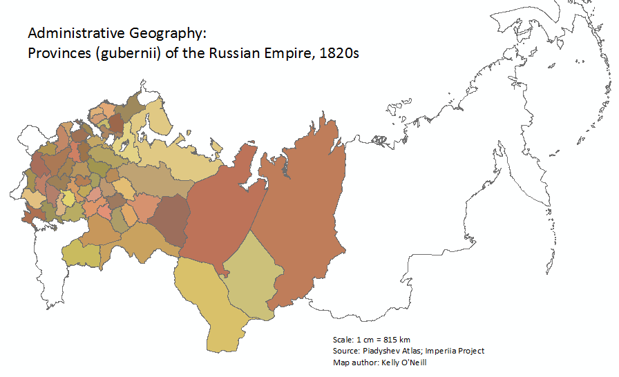 Provinces were the building blocks of the imperial administrative structure. Starting in the 18th century, provinces came in two forms: the guberniia and the oblast'. Empress Catherine II determined the shape and structure of the former, dominant form, with her 1775 Statute on Guberniia Administration (law number 14392). At that time there were 40 gubernii; by the 1820s there were 49, the geography of which corresponds - some argue - to the geography of the core of the Russian Empire.