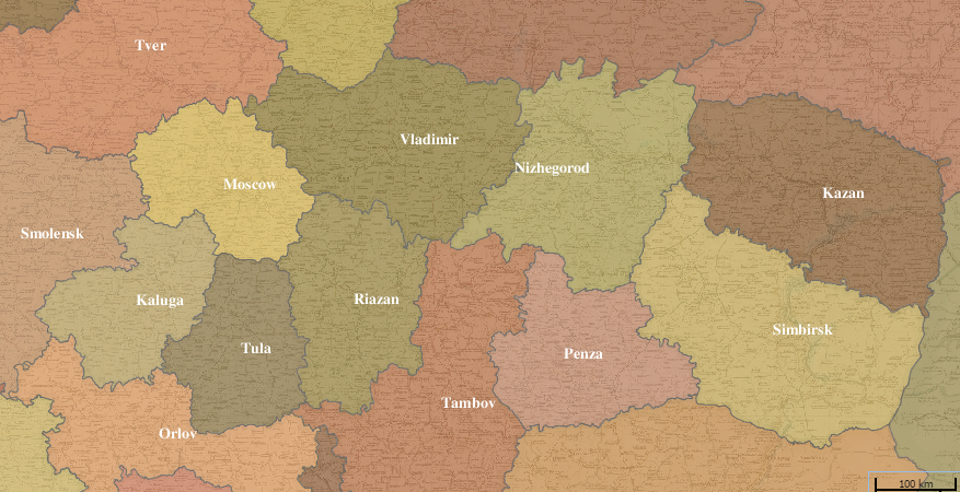Included here are the 7 gubernii of the Grand Duchy of Finland as well, bringing the total number of gubernii shown on the atlas to 56.
