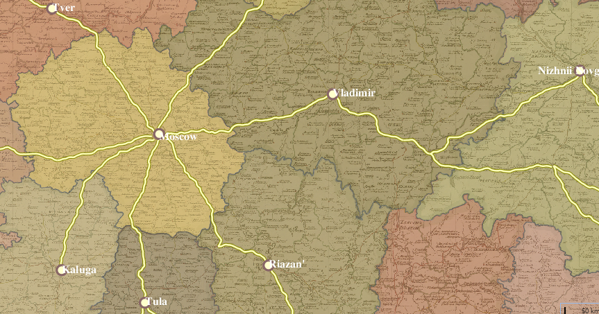 There were over 1,000 main post roads crossing the empire in the 1820s.