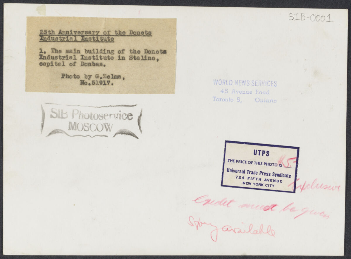 1. 25th Anniversary of the Donets Industrial Institute. The main building of the Donets Industrial Institute in Stalino, capital of Donbas.