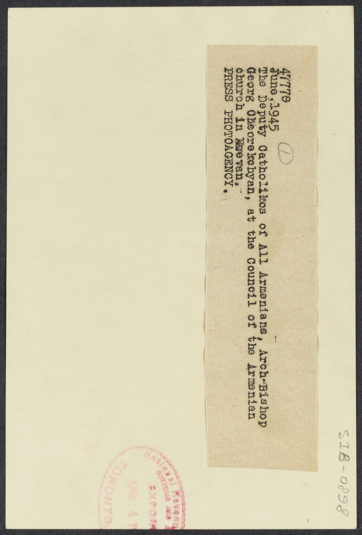 June, 1945. The Deputy Catholikos of All Armenians, Arch-Bishop Georg Cheorekchyan, at the Council of the Armenian church in Erevan.
