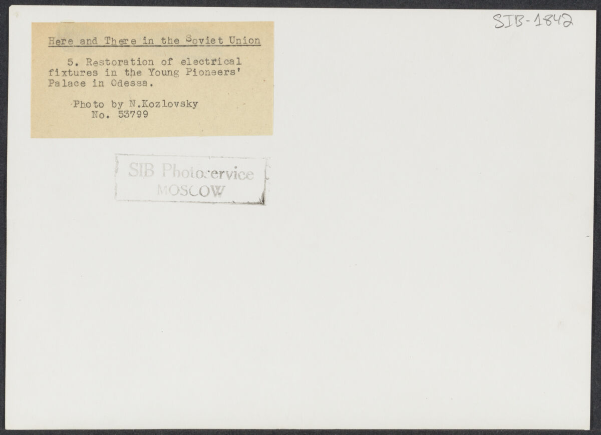 5. Here and There in the Soviet Union. Restoration of the electrical fixtures in the Young Pioneers' Palace in Odessa.