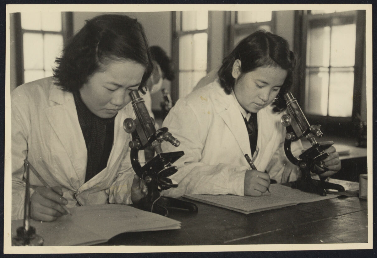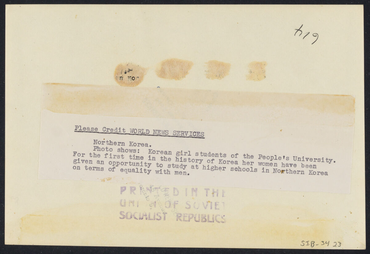 Northern Korea. Please Credit WORLD NEWS SERVICES/ Northern Korea./ Photo shows: Korean girl students of the People's University. For the first time in the history of Korea her women have been given an opportunity to study at higher levels in Northern Korea on terms of equality with men.