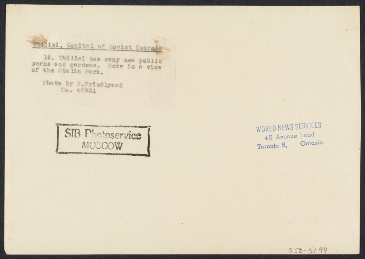 Tbilisi, Capital of Soviet Georgia/ 16. Tbilisi has many new public parks and gardens. Here is a view of the Stalin Park./ Photo by S. Friedlyand/ No. 42931
